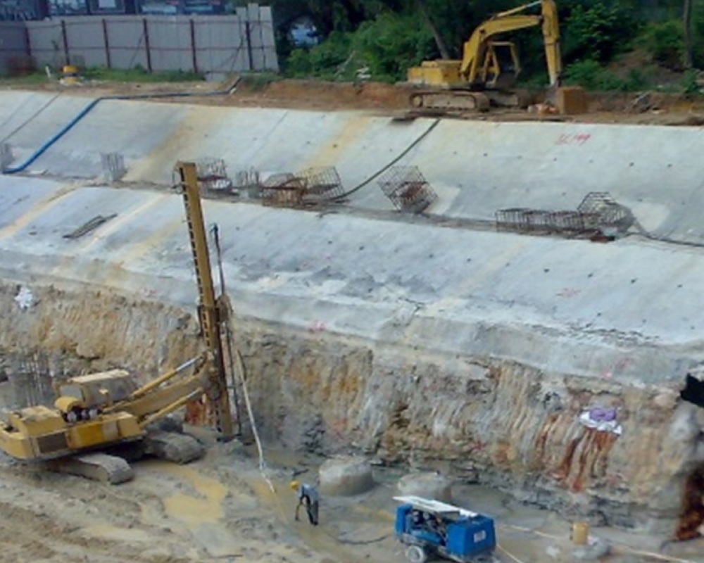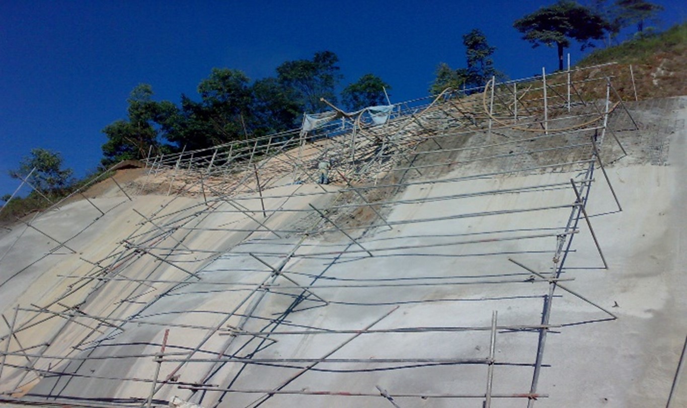 Soil nails are an economical and quick solution to slope stabilization for both permanent and temporary conditions. These soil nails comprising of fully grouted steel bars drilled between 3m to 18m into the slope’s soil mass are widely used to prevent slips of many of the gentler cut slopes in the construction of Malaysia’s highways.